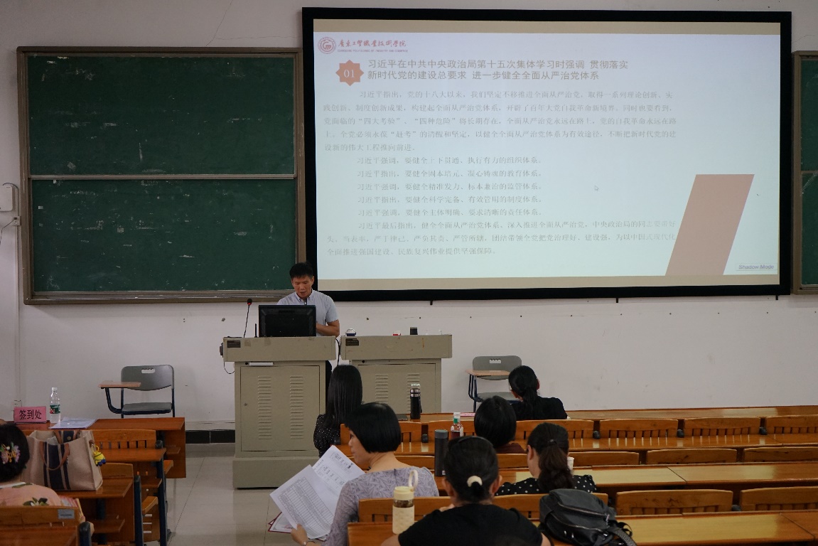 首先,罗春科带领学院全体教职工学习习近平在中共中央政治局第十五次集体学习强调的内容。主要包括贯彻落实新时代党的建设总要求,进一步健全全面从严治党体系和全党必须永葆“赶考”的清醒和坚定,以健全全面从严治党体系为有效途径,不断把新时代党的建设新的伟大工程推向前进。