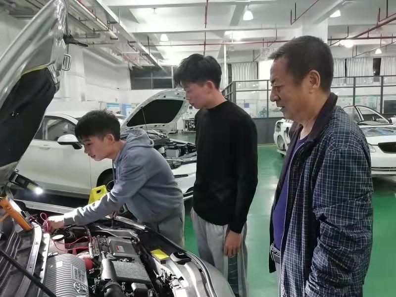汽车学院郇锐铁老师晚值班指导学生进行技能训练