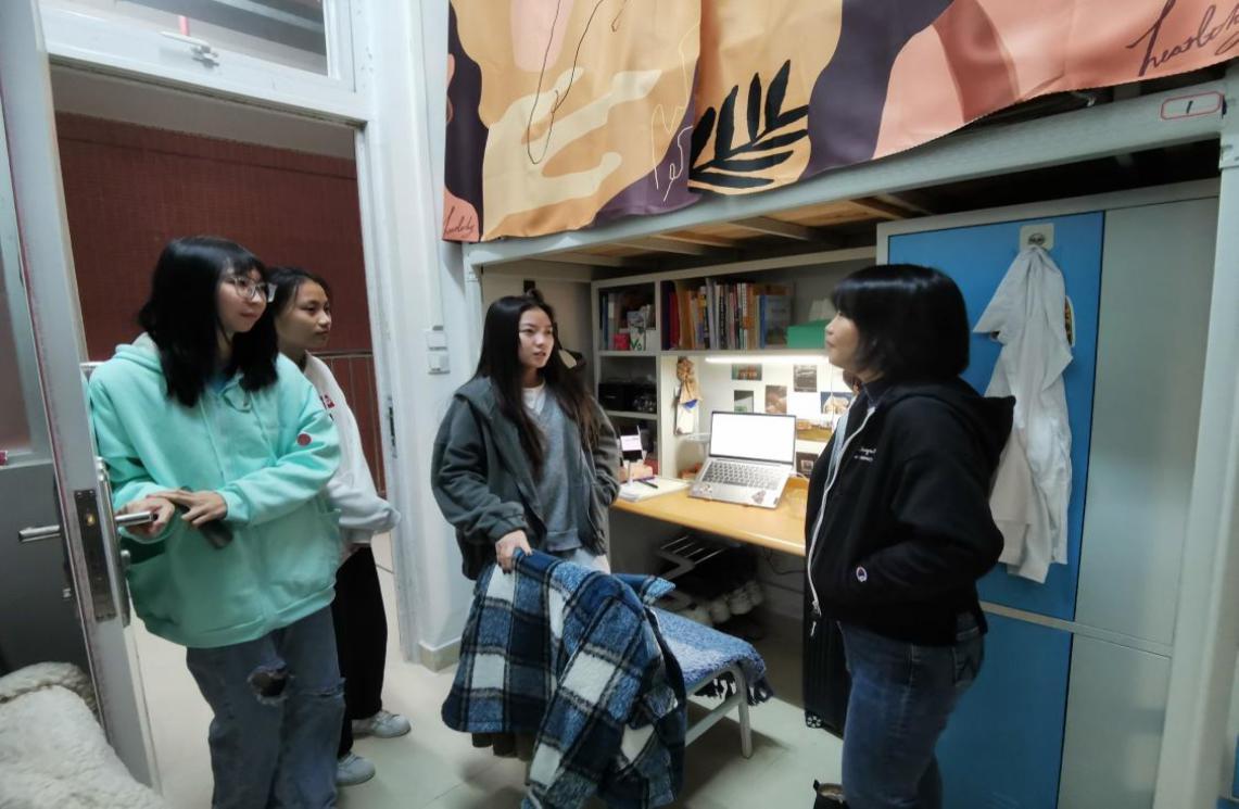 唐毓秋副校长与教师们一起深入学生宿舍