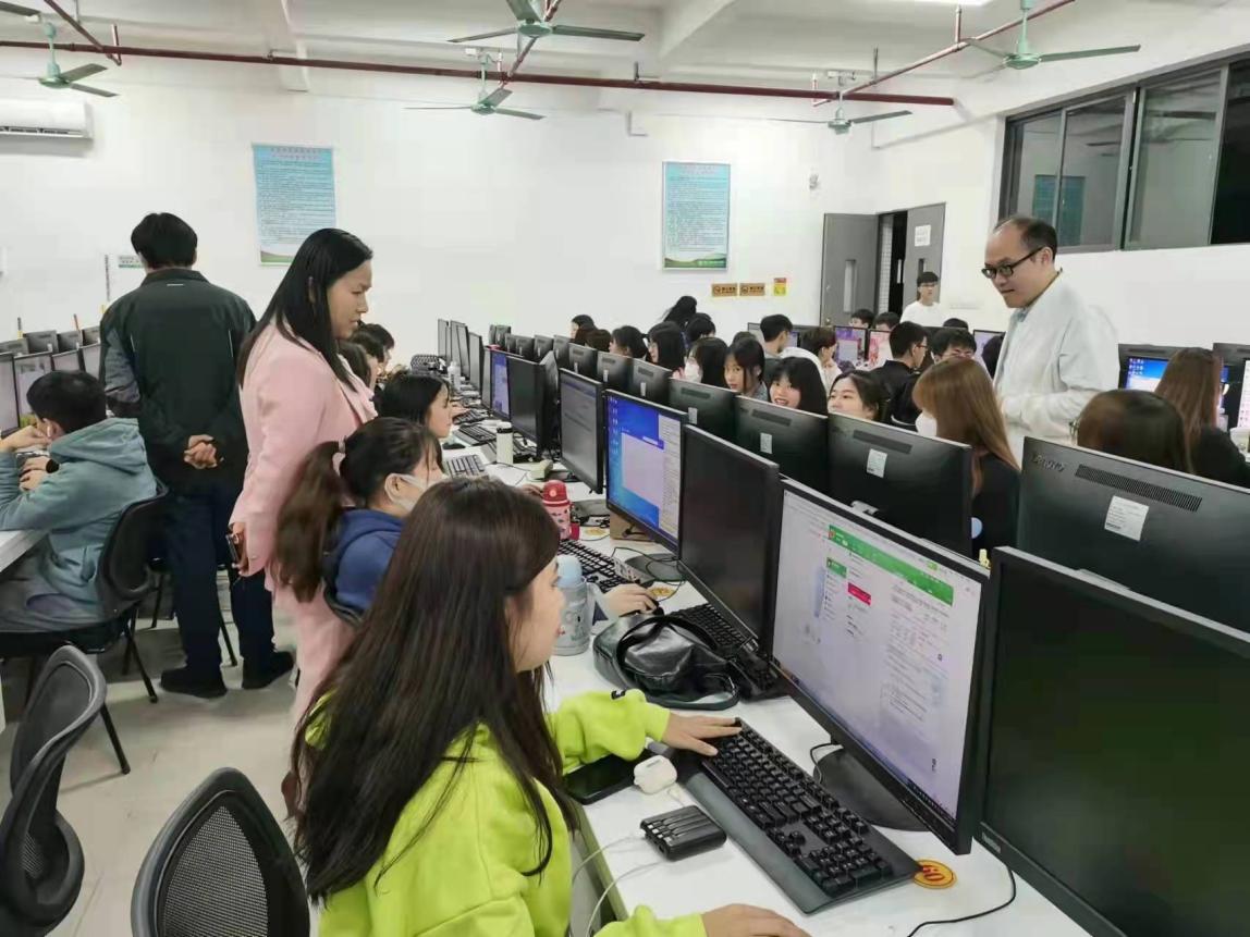 经济贸易学院党员教师廖晓红、陈中明、李波利用晚值班指导学生电商实训