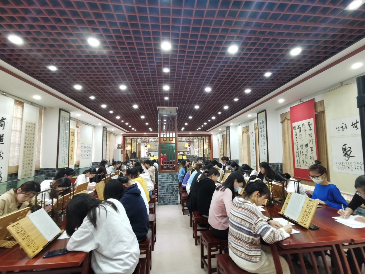 为深入学习贯彻习近平新时代中国特色社会主义思想和习近平总书记在庆祝中国共产党成立一百周年大会上的重要讲话精神,根据学校工作安排,我艺教学院于12月16日下午2:30在书道室举办首届“艺教杯”学生书法比赛,共分三批进行,现场参赛学生人数达160多人,参与面广,积极性高,用最美的字书写最爱的党,表达了爱党爱国之情。