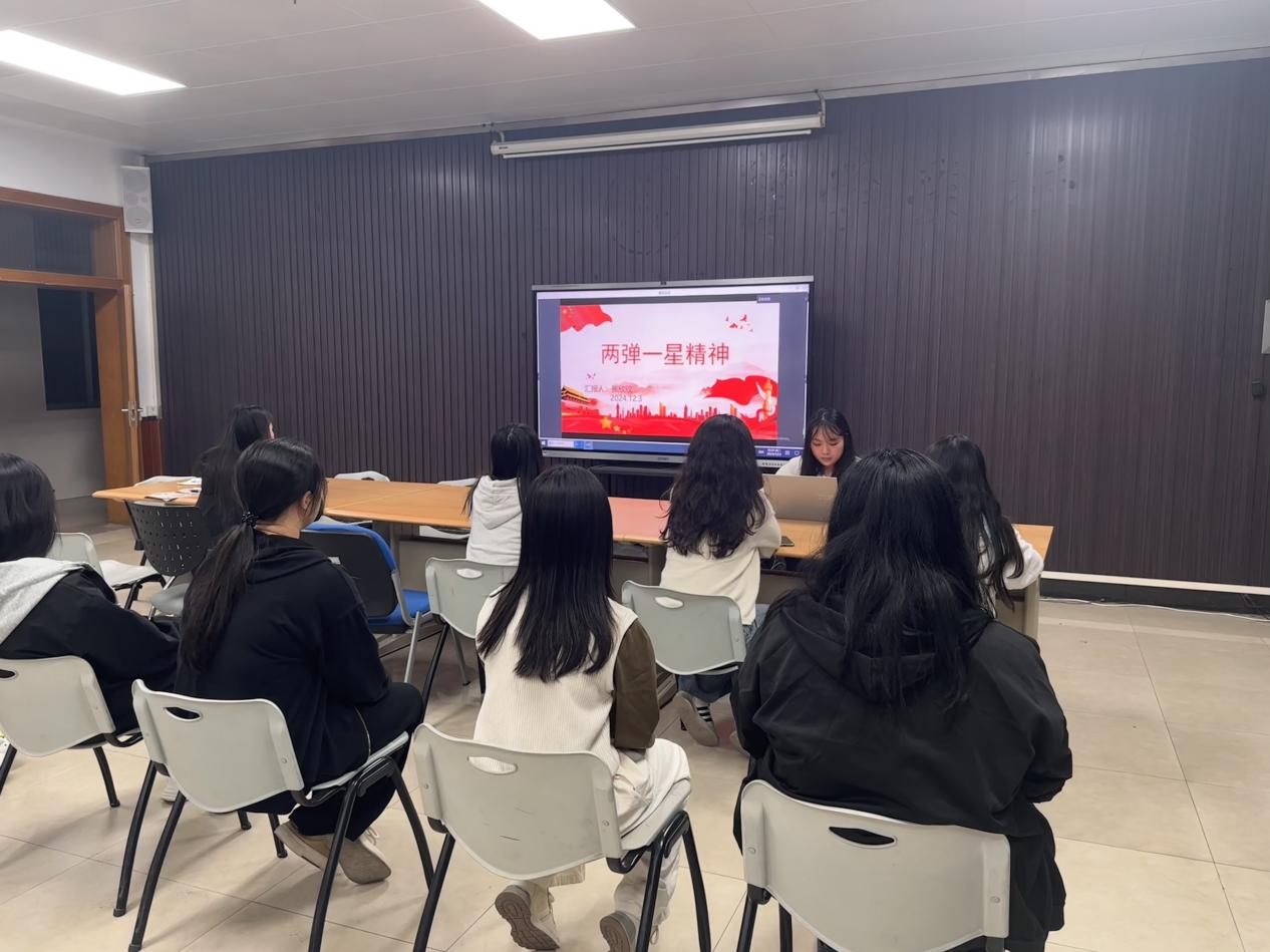 为传承新时代红色基因、赓续红色血脉,2024年12月3日,15vip太阳集团艺术教育学院学生党支部在“一站式”学生社区开展了以“两弹一星”精神为主题的党史宣讲活动,主讲是学生党支部学生党员张欣欣同学。